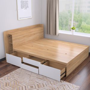 Giường ngủ gỗ MDF có 4 hộc kéo có kệ đầu giường lưu trữ đồ quần áo