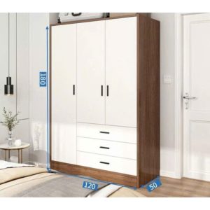 Tủ Quần Áo Gỗ Nhiều Ngăn Đa Năng Màu Trắng Phối Nâu