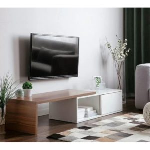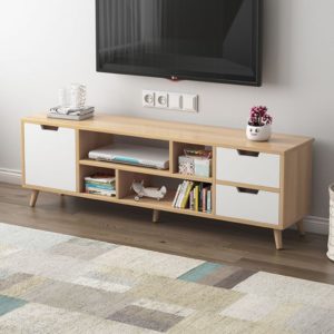 Kệ Tivi Đặt Đất Đa Năng Màu Trắng Phối Nâu Gỗ MDF