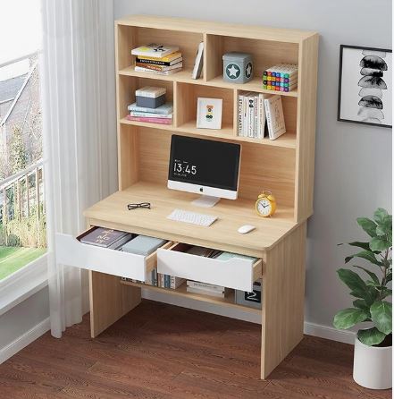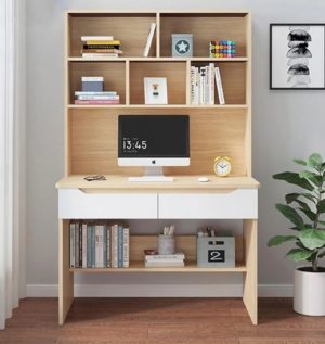 – Bàn làm việc được thiết kế thích hợp kèm kệ sách vô cùng đa nặng, tiện lợi.