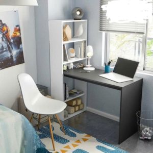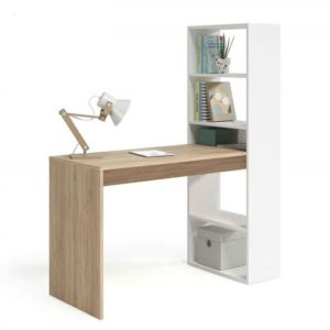 – Bàn làm việc được tích hợp kèm kệ sách là một thiết kế vừa đơn giản nhưng không kém phần mới mẻ, bắt mắt. Kệ sách được đặt bên hông bàn làm việc vừa có thể làm một bên chân vững chắc và nhìn bàn trông cứng cáp hơn.