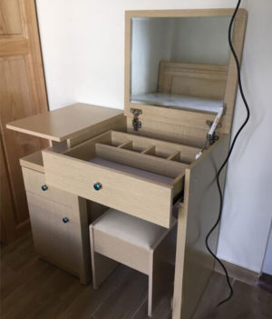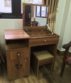 Bàn trang điểm được làm từ vật liệu gỗ MDF phủ Melamine chống trầy xước, cong vênh: