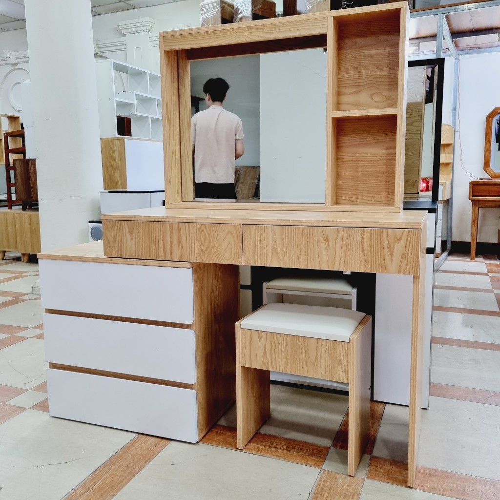 – Bàn trang điểm được làm từ vật liệu gỗ MDF phủ Melamine, chống trầy xước, dễ dàng vệ sinh