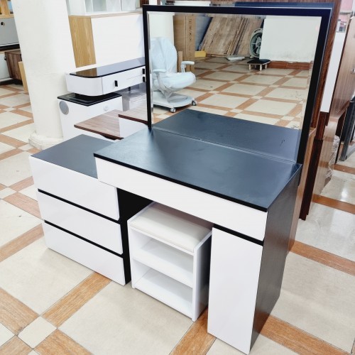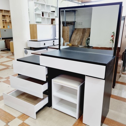 Bàn trang điểm này không chỉ đơn thuần là nơi để làm đẹp mà còn tích hợp một hộc kệ tiện ích giúp bạn dễ dàng sắp xếp mỹ phẩm, đồ trang điểm và phụ kiện. Thiết kế hiện đại, sang trọng, đem lại vẻ đẹp tinh tế cho không gian phòng ngủ của bạn.