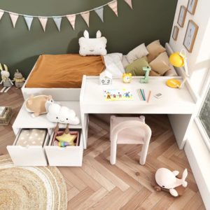 COMBO GIƯỜNG NGỦ CAO 60CM GỒM KÈM BÀN LÀM VIỆC VÀ HỘC KÉO ĐỰNG ĐỒ
