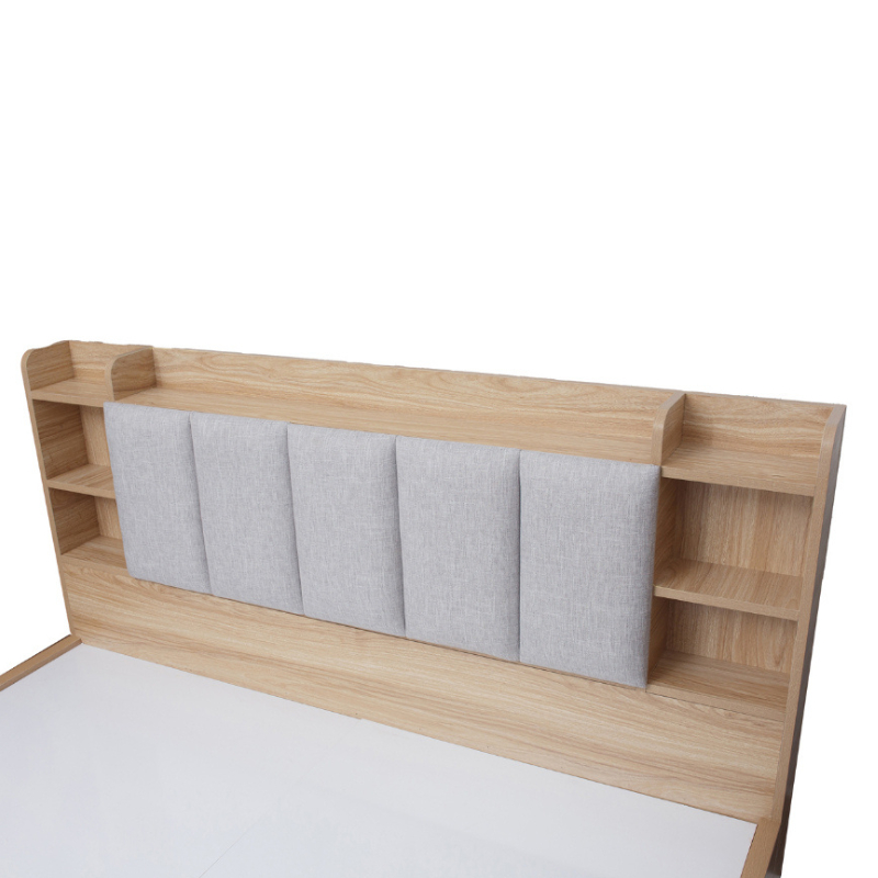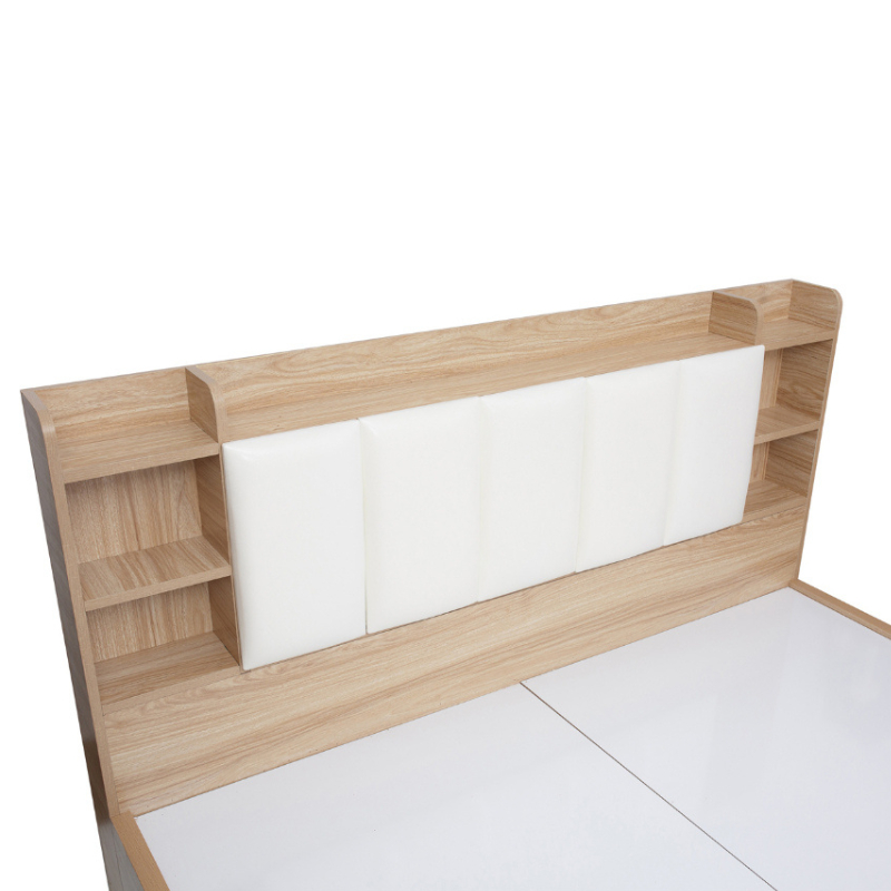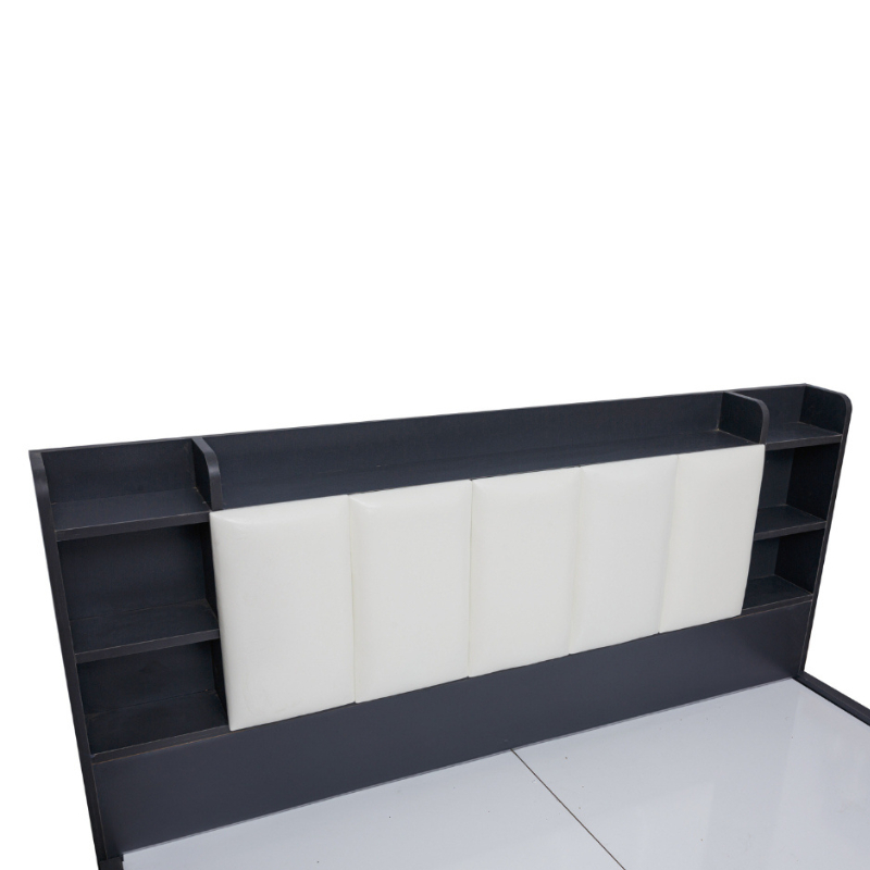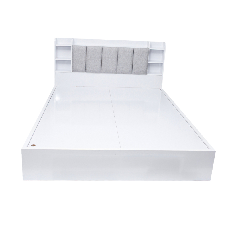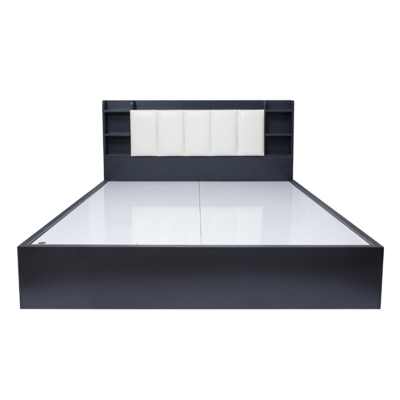 – Chất liệu: Gỗ MDF phủ lớp melamine chống trầy xước, đầu giường bọc da cao cấp.