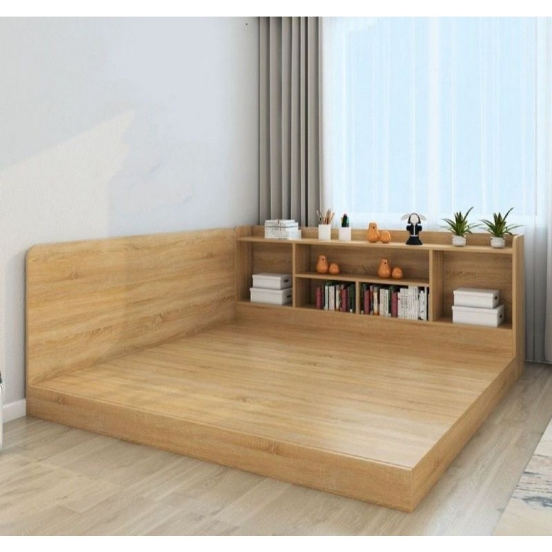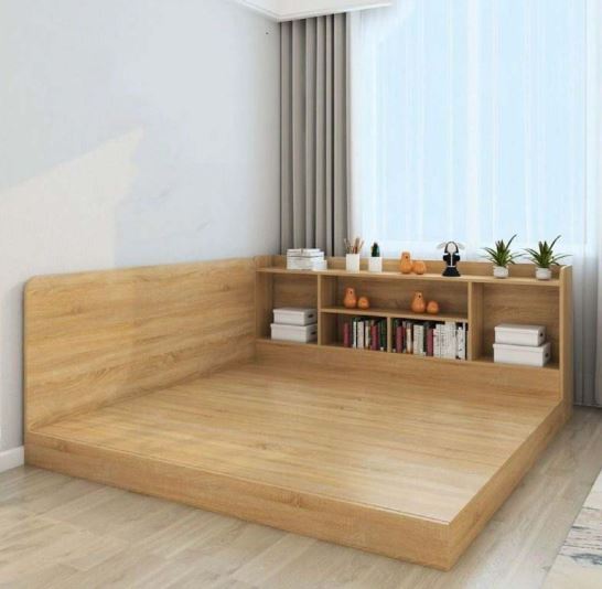 [Freeship Hà Nội] Giường nhật kiểu bệt kèm kệ sách gỗ MDF – 1m8 x 2m