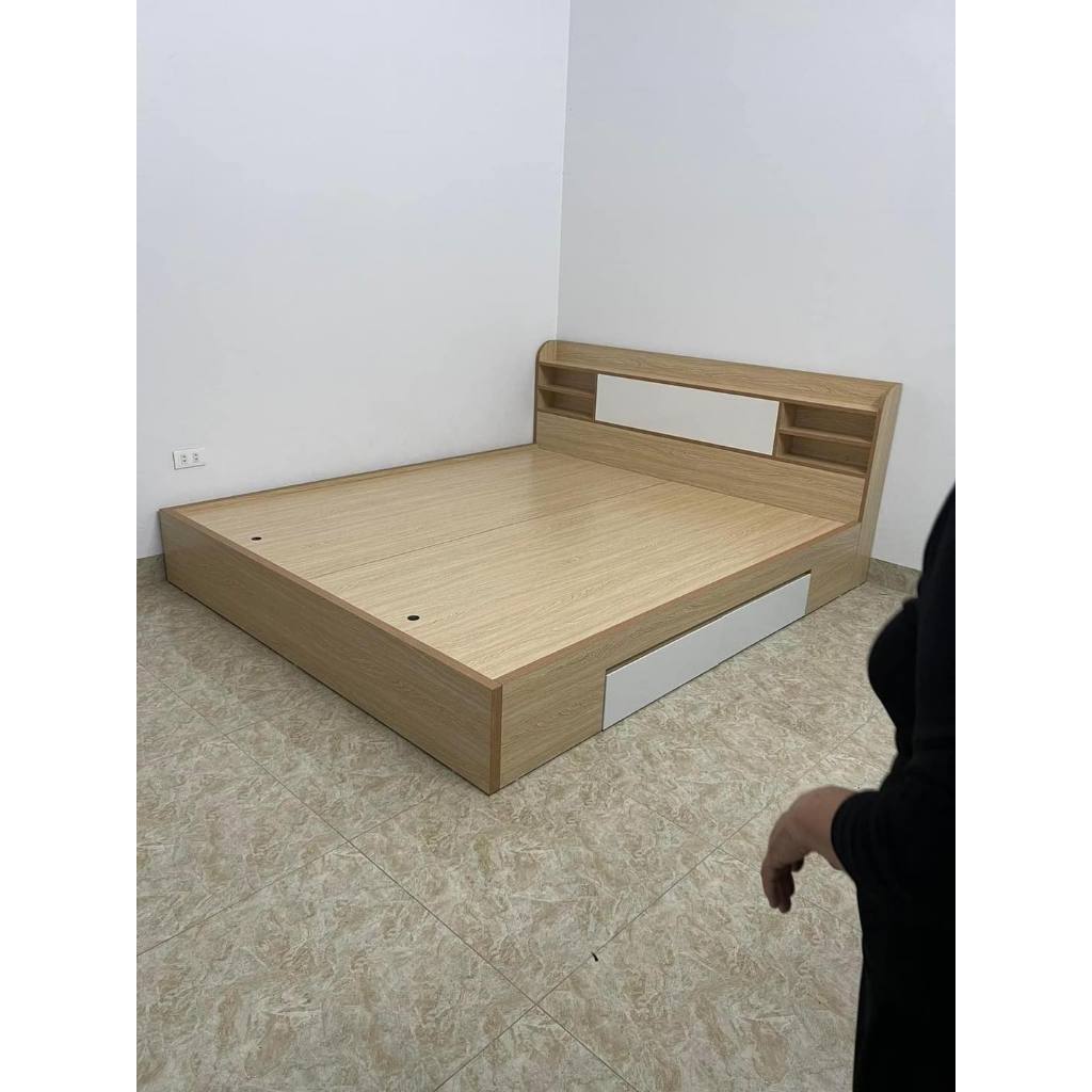 Giường ngủ gỗ công nghiệp MDF có kệ đầu giường bo cong