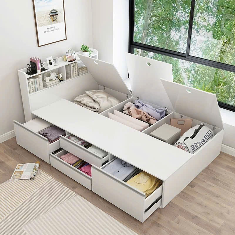 Hãy là người đầu tiên nhận xét “Giường Ngủ Thông Minh 4 Hộc Kéo, 3 Nắp Lật Gỗ MDF”