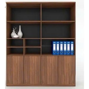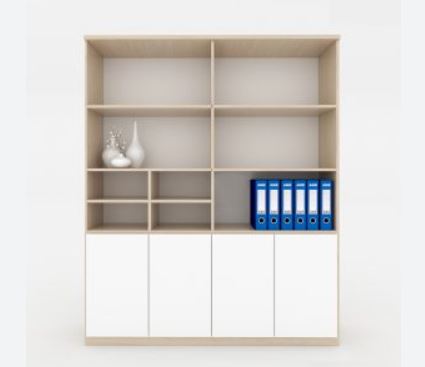 Tủ thiết kế phía trên có chia thành 2 ô chia thành 6 ngăn ngang dùng để đồ trang trí hoặc tài liệu có tính thẩm mỹ cao, phía dưới có 4 cánh kín để tài liệu, hồ sơ khoa học hơn.